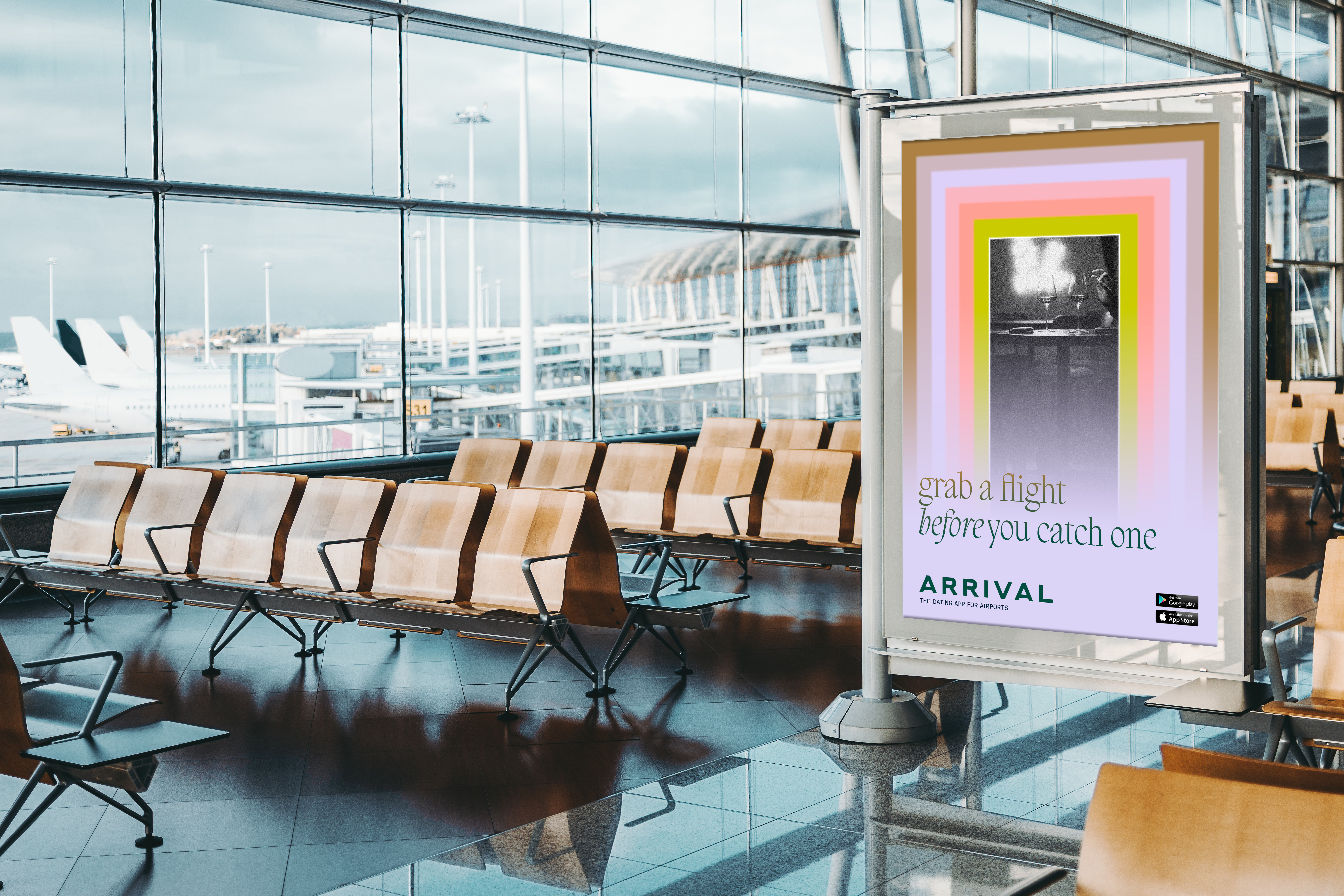 Out of home located primarily in airports to encourage users to download Arrival.